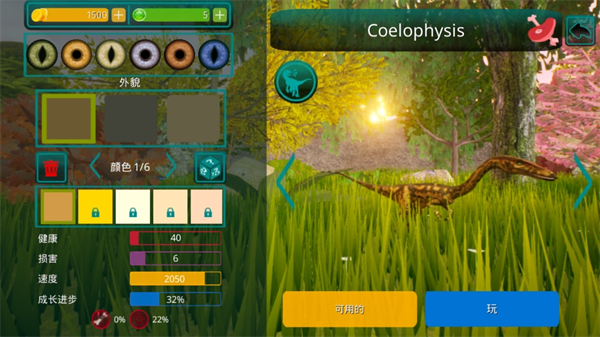 选择角色如迅猛龙或霸王龙,逐步进阶,体验狩猎与进化。