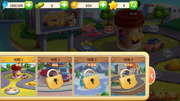 1、进入游戏后,开始第一站的烹饪管理,在这里每关都有不同的任务目标。