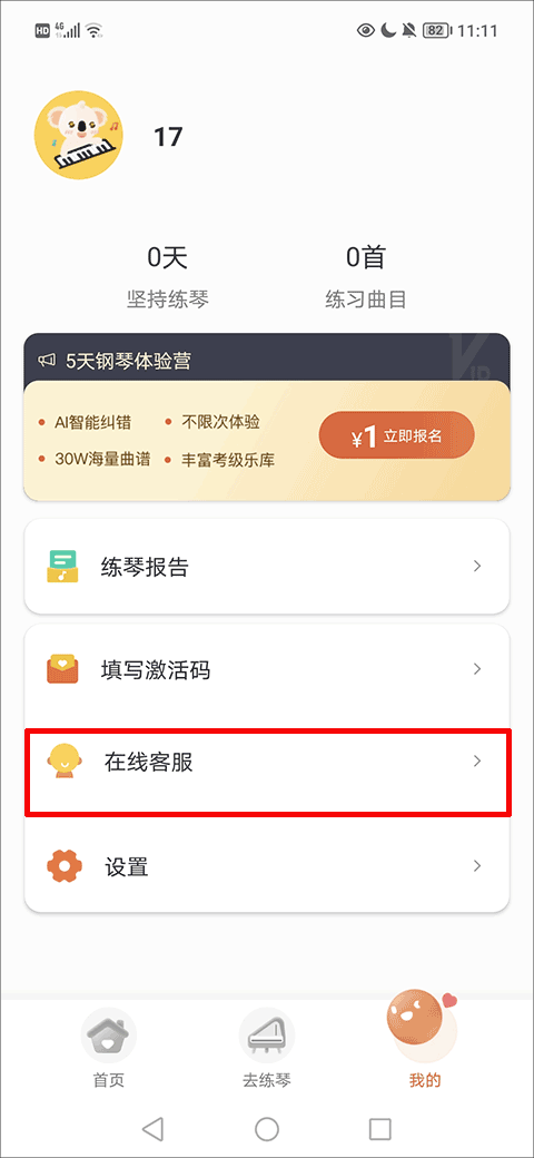 1、打开应用后点击我的,在菜单中查找在线客服选项并进入。