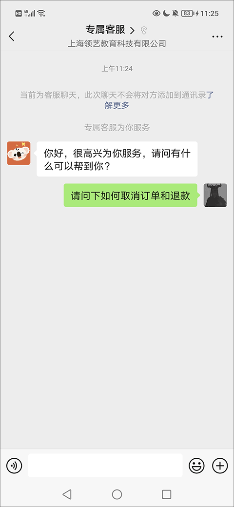 2、在对话框中说明订单取消的需求,客服将指导后续流程。