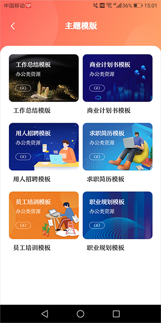 包含求职演示、企业汇报、招聘说明、培训资料、个人规划等常见的商务模版。