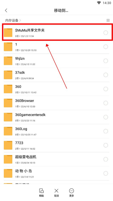 4、进入目标文件夹后,点击底部粘贴按钮完成移动过程。