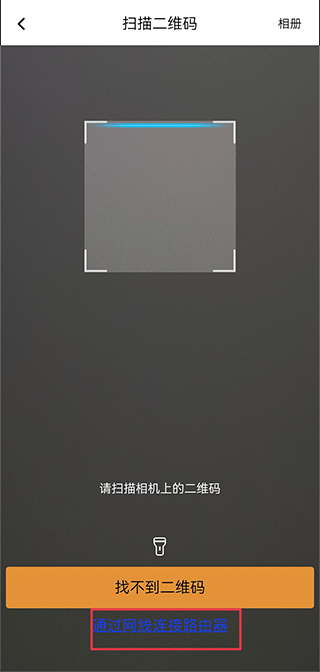 3、将手机对准摄像机上的二维码以进行扫描添加,若用户扫描不了也可以点击下方的“通过网线连接路由器”来添加。