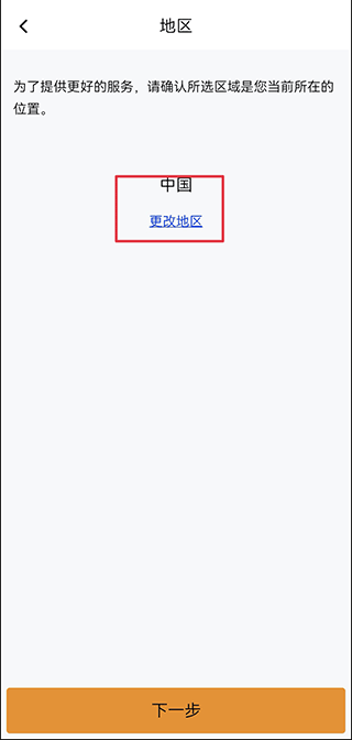 2、选择自己目前所在的地区位置。