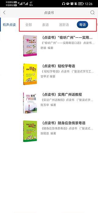 2、在上方栏目中,用户可以左右滑动去筛选自己想要点读的语言,并点击进入。