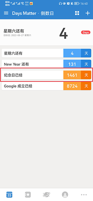 倒数日手机版能够帮你把每一个值得铭记的日子牢牢记住。有了倒数日手机版下载安装后,即将到来的约定,还是曾经走过的重要时光,都能以清晰的方式呈现在你面前。到达设定时间时系统自动提示,让你再也不会因为遗忘而错失重要瞬间。界面简洁,操作顺手,还有不少实用小功能藏在其中,等你来发现。