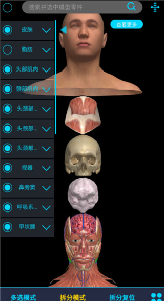 3、拆分模型功能则可将人体的各个器官随意拆解,将器官从人体模型中取出进行独立观察。
