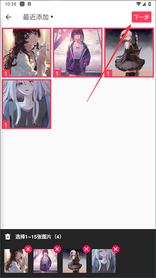 3、以【自由拼图】为例,用户选择自己所需要拼图的图片,再点击【下一步】。