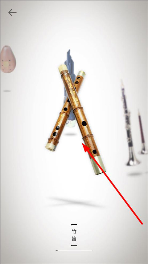2、点击打开调音器后,调音器中有竹笛、萧、唢呐、笙、埙、排箫、十二孔陶笛、三管陶笛等乐器,点击竹笛开始校对。