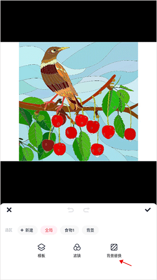 3、进入背景替换页面,点击更换,选择任意图片做背景使用。