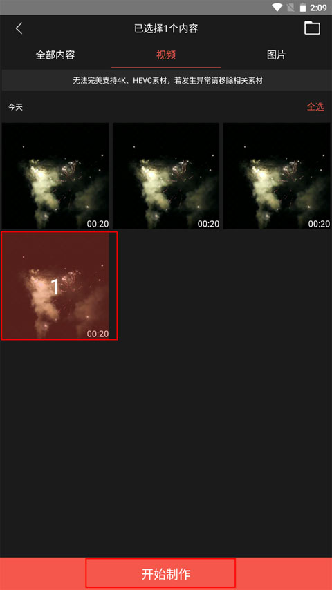 相册中挑选所需视频,确认后点击立即处理。