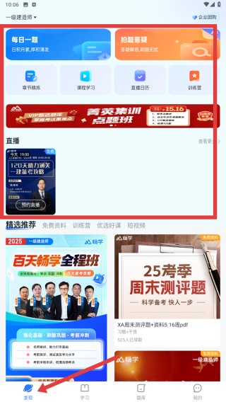 首页集合每日习题、课程日历,推送丰富课程资源含录播与直播。