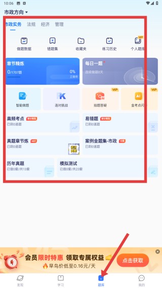 设有专项练习、每日练习等模块,便于考生高效刷题巩固知识。