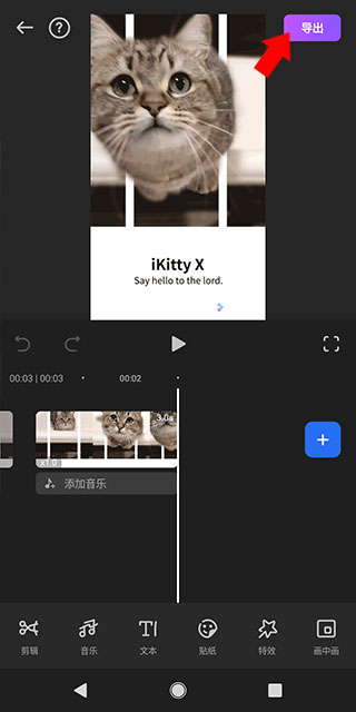 4、底部工具支持文字、特效、贴纸等多元功能。