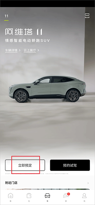 启动App,在车型栏目中点击“预定”,开始选配流程。
