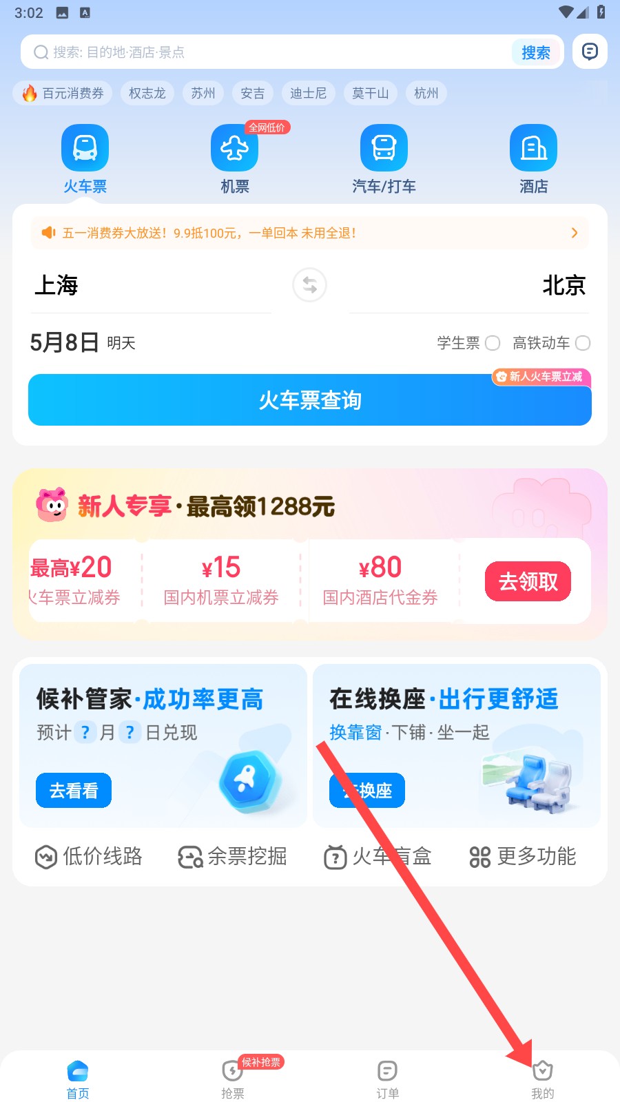 3、预约抢火车票实时捡漏,还能vip抢票也可以上车补票办理改签或退票。