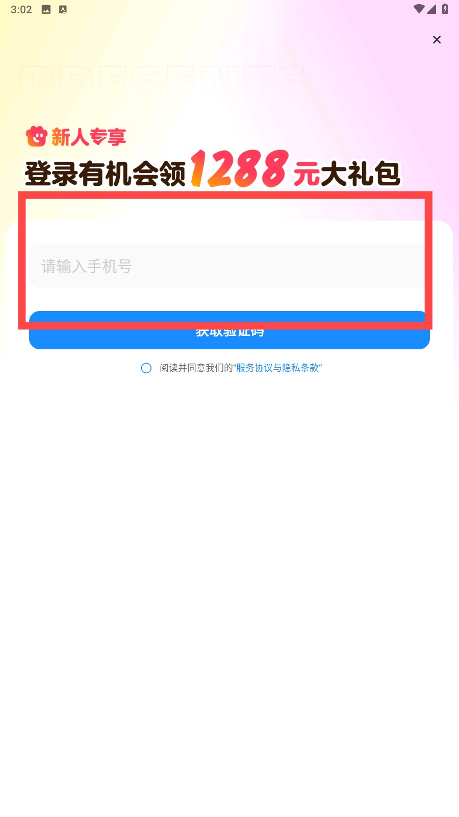 3、用户可以去输入手机号码,获取验证码来登录就成功。
