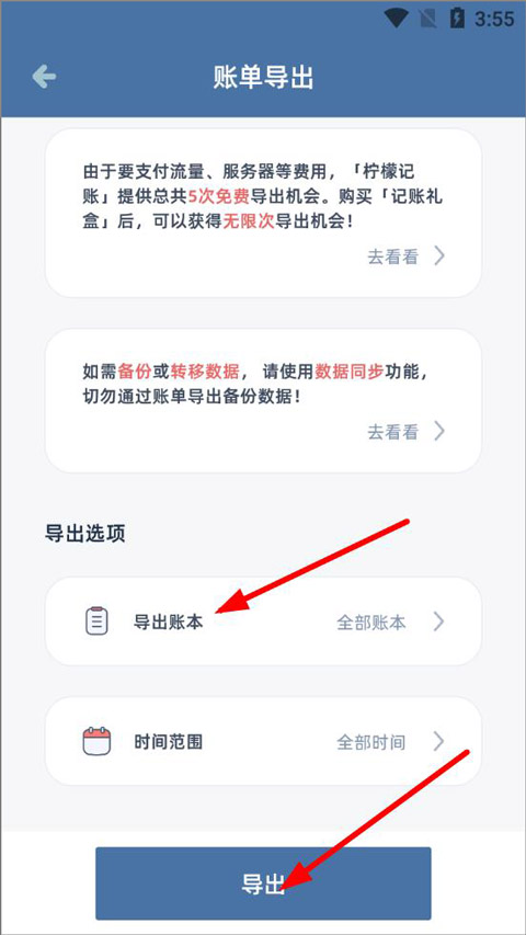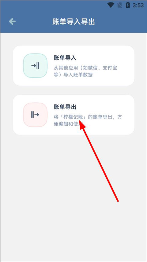 在快捷设定下拉界面中找到并进入账单导出导入。