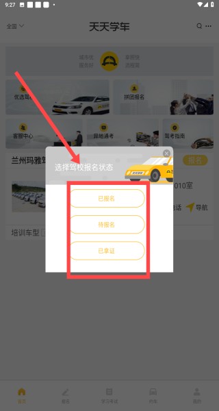 2、在首页选择已报名或待报名,系统会自动匹配相应服务。