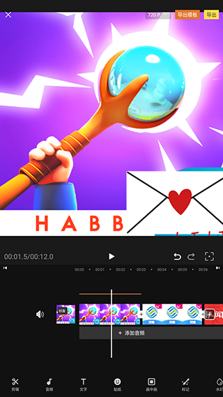 支持音效导入与调节,剪辑背景音乐操作灵活。
