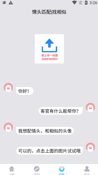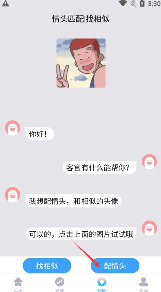 3、选择完毕图片后,点击配情头便可以找到相似。