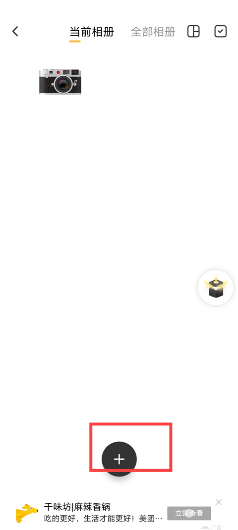 1、进入OldRoll复古胶片相机安卓软件,在去点击右下角黑色长方形。