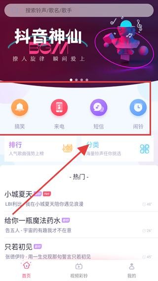 1、进入酷音铃声app手机版首页,点击分类按钮来去选择铃声类别。
