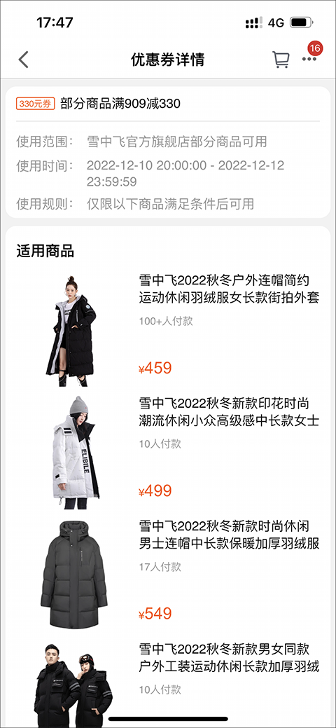 4、选定商品后,可直接查看抵扣优惠后的券后价并对比原价。