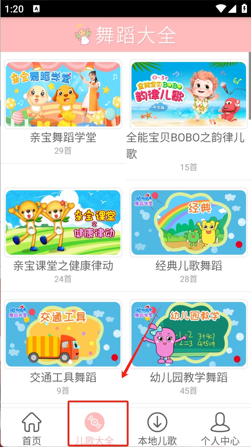 软件里有着涵盖儿歌、舞蹈、童谣、早教课程满足孩子的娱乐学习需求。