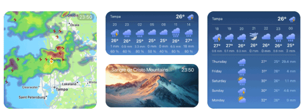 增强的行程规划:地图通过全新的“数据指针”工具集成了气象数据,可显示任意选定地点的天气变量。