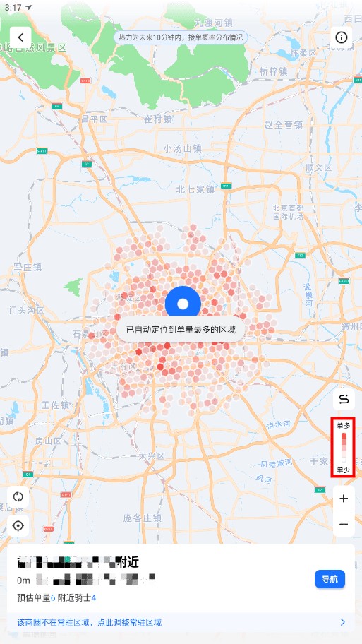 2、这里可以看到随着颜色加深,单量就越多而骑士少,非常清晰。