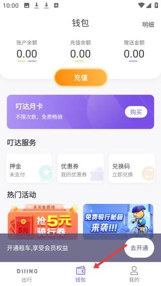 2、只需点击钱包余额信息清晰,提供月卡购买等服务展示热门活动满足需求。
