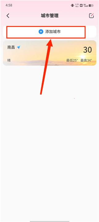 3、在去点击添加城市,选择自己想要添加的城市即可,当然也可以进行切换。