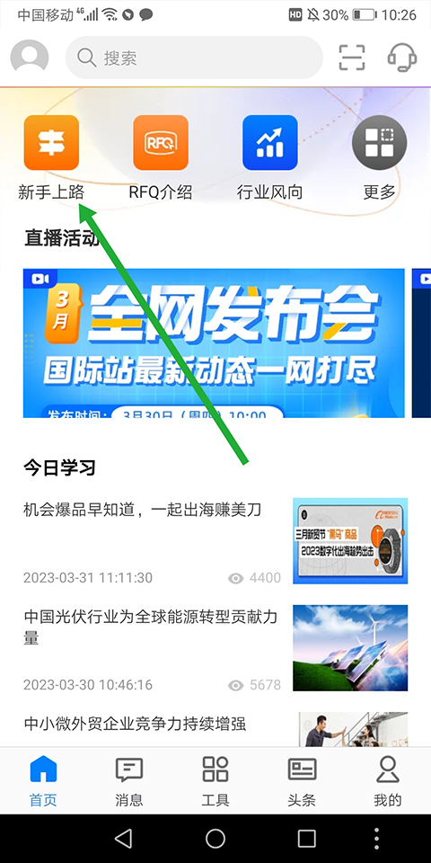 1、打开阿里旺旺卖家版在去进入首页后,点击“新手上路”。