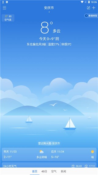 天气早知道天气预报提供长达40天的气象趋势预报,涵盖温度、湿度、风速风向、空气质量与体感温度等多项实况数据,支持语音播报功能,让你随时用耳了解天气变化。遇到强降雨、大风等恶劣天气将自动发出预警,便于提早安排出行和生活。天气早知道天气预报下载安装后,软件界面清晰简洁,数据更新及时,是日常气象查询与安全出行的贴心助手。