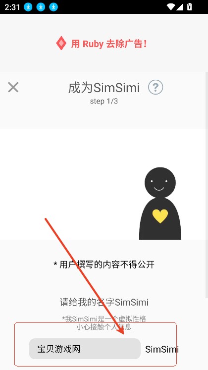 2、输入姓名昵称,点击确定。