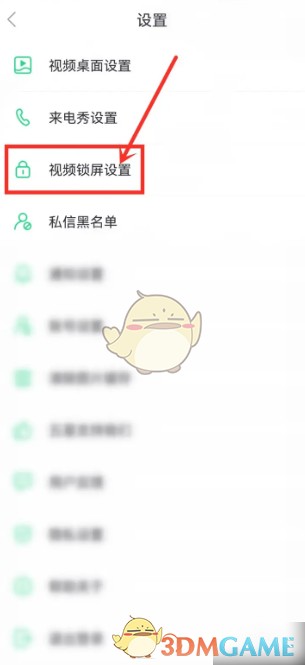 2、进入到设置页面,点击“视频锁屏设置”选项。