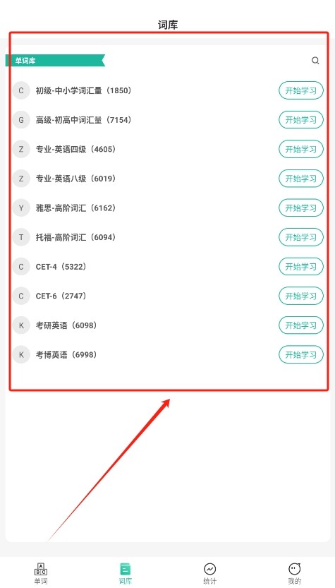 2、用户可以去浏览不同阶段的单词分类,在去根据自需求选择合适的学习模块精准地提升英语能力。