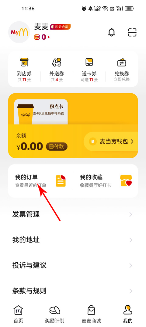 2、切换到【奖励计划】页面之后,还能加入麦麦会员奖励计划,消费可累积分兑换超值好礼。