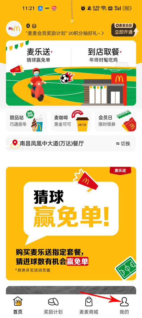 1、进入软件【首页】之后,就能看到最常用的两个功能,分别是麦乐送和到店取餐。