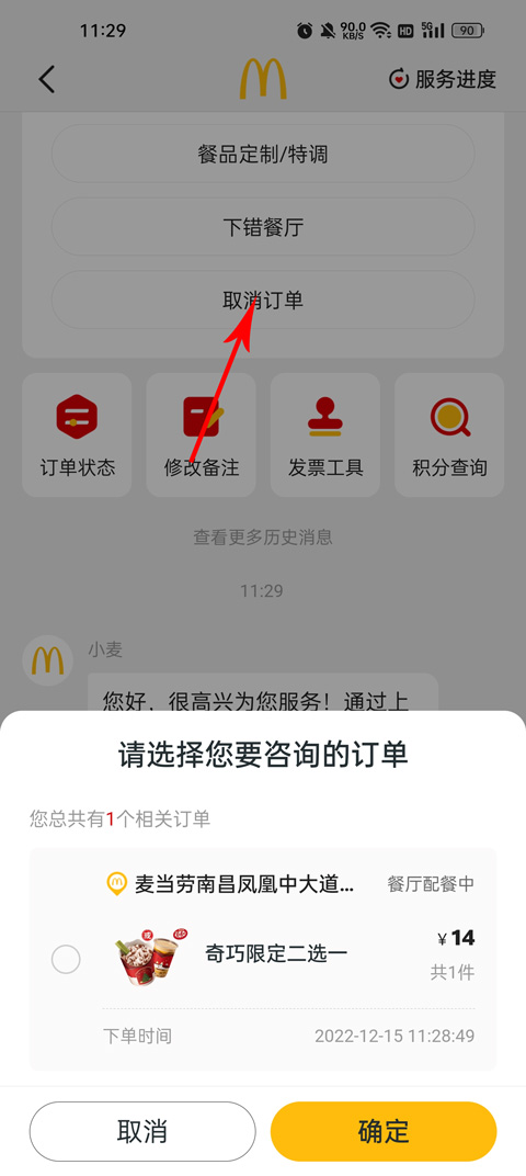 5、然后进入客服服务界面点击取消订单,可以得到商家电话,进行电话取消订单,最后就能退款成功。