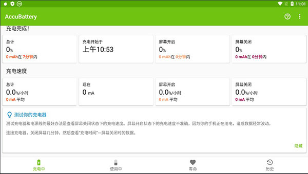 1、在本站下载打开精准电量App,在充电中可以看到电池的损耗和剩余情况。