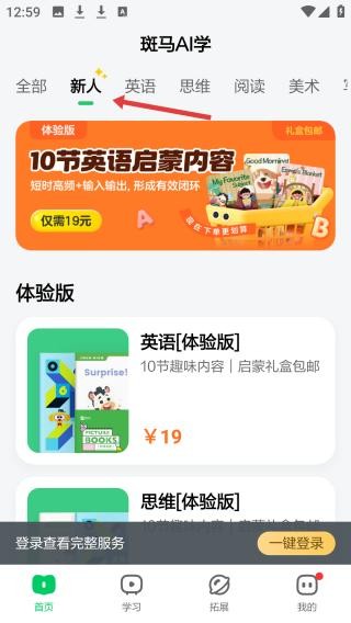2、点击英语分类页突出新人板块,展示启蒙体验课,10节课程搭配优惠,助力孩子英语起步。