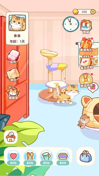 模拟喂食洗澡互动日常,全流程参与虚拟养猫全过程。