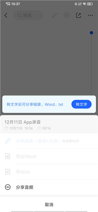 3、录音整理功能:录音转文字,支持多种音频格式导入,5分钟内快速生成文字稿。