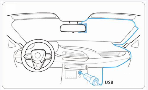将SD卡插入设备,用USB连上车载电源,启动记录仪供电。
