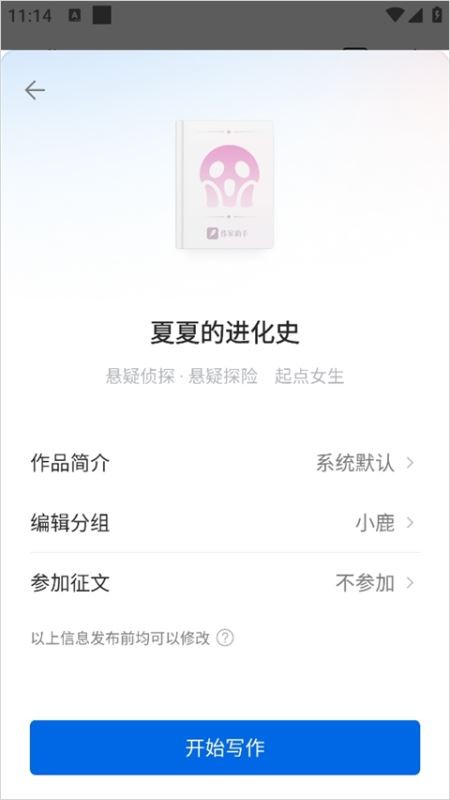 打开APP首页,点击新建作品按钮,进入写作界面设置。