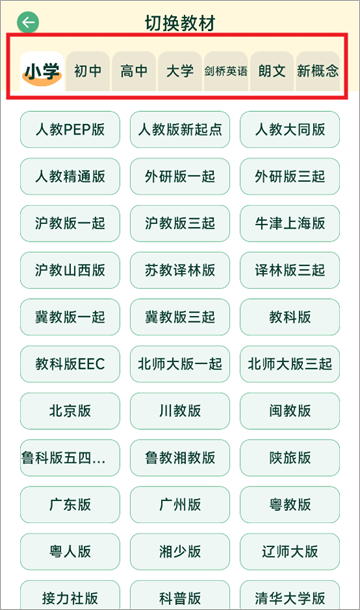 浏览列表,根据学习目标选择相应教材版本或系列词库。