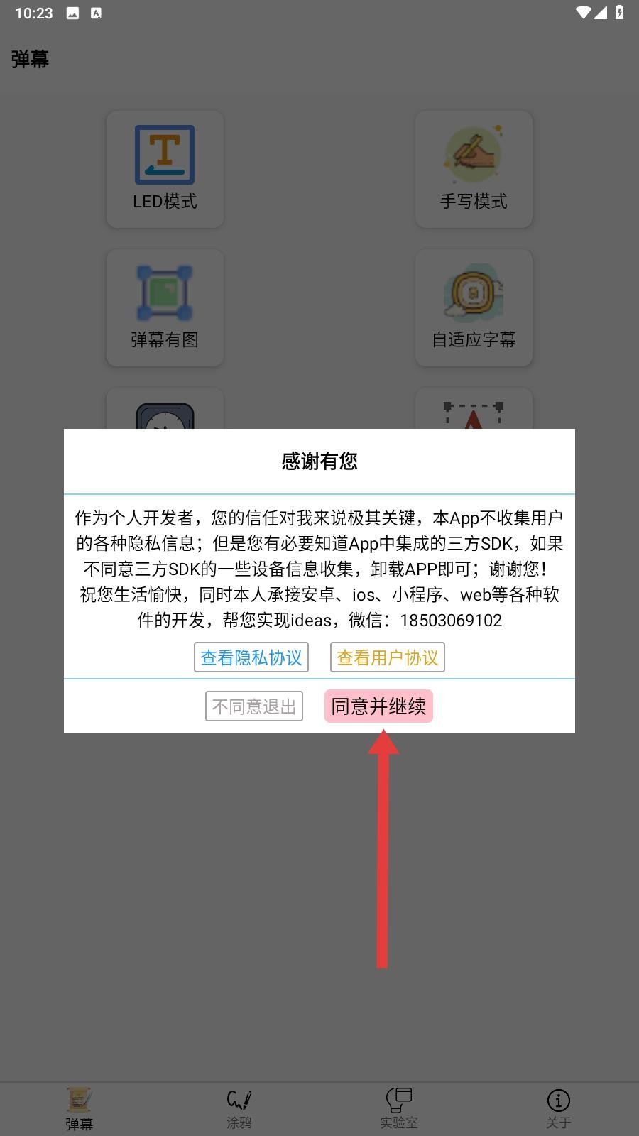 首次打开需阅读协议,确认同意后进入主界面操作。