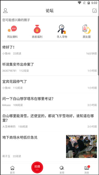 3、设有爆料、找人、商圈优惠、网友分享等社区交流板块。